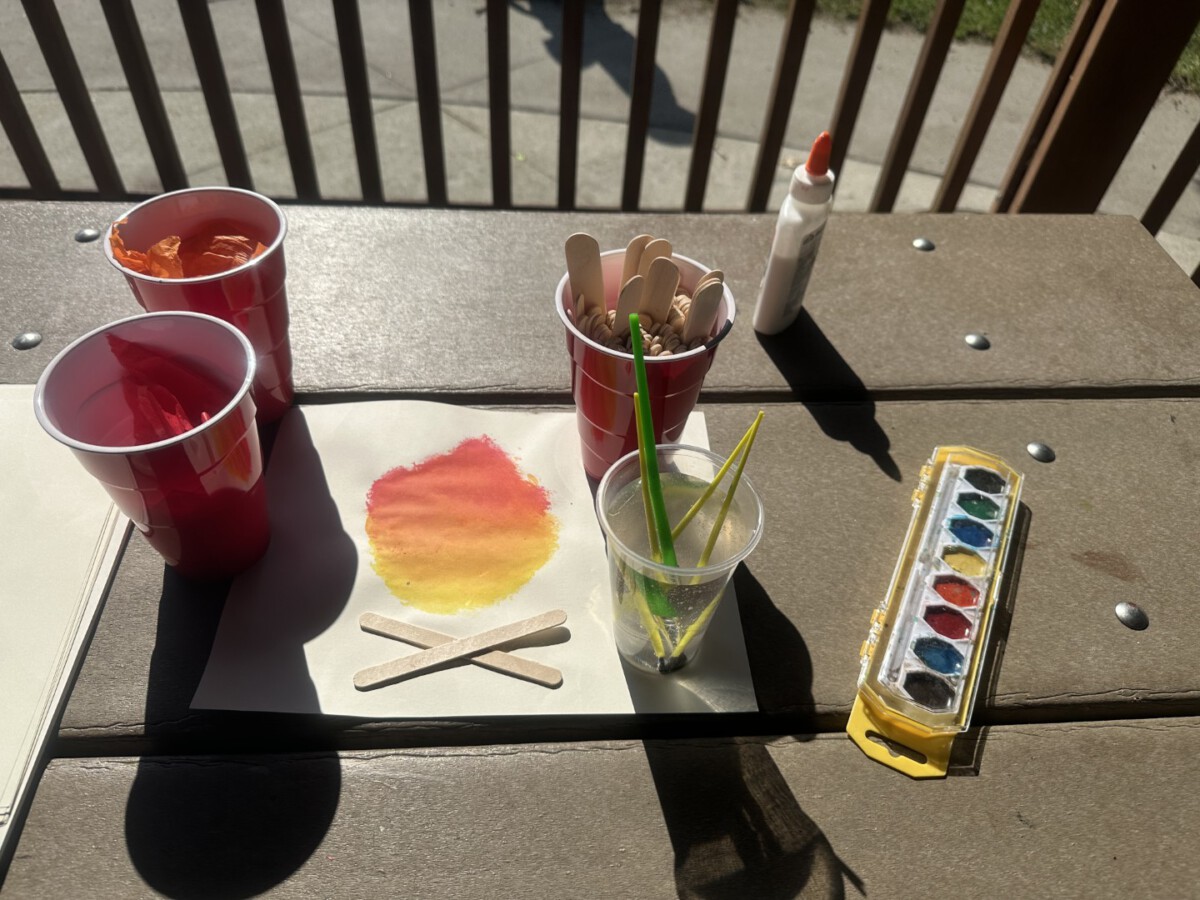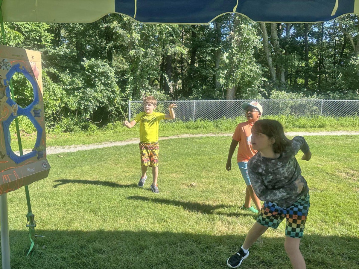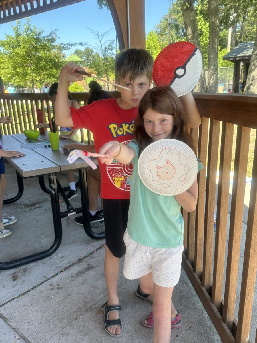 Today was a hot day at Sunshine Group! Lots of fun in the field attempting some animal challenge stations like climbing like a bear on stepping stones, balancing like a flamingo, slithering like a snake, etc. Plus we had water fun with water squirters tag. During Crafts we made own “fire” pits, glue spider webs, sun catchers, and sunshine group mural tree. Pick a project had an arcade with Skee Ball and Mini Golf plus make your own boat and Bug Bingo.